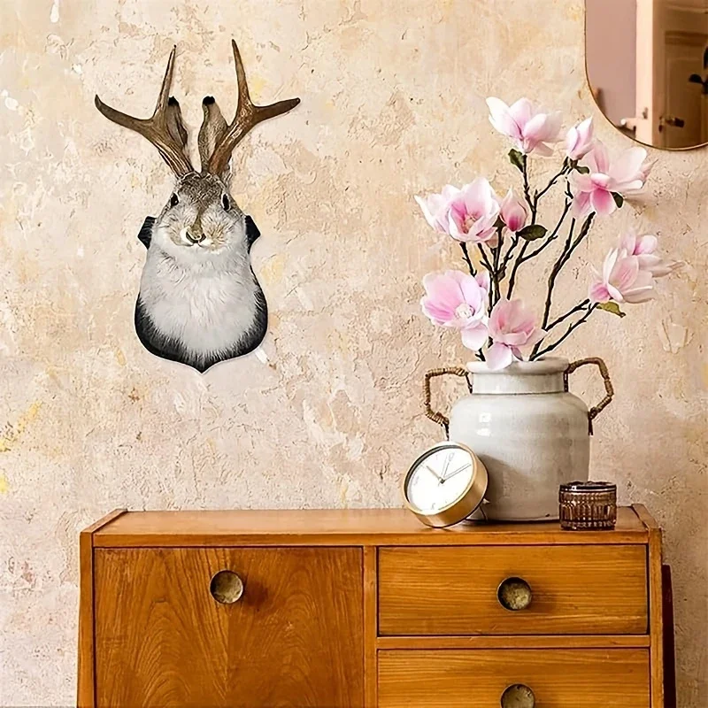 Jackalope Mount Deer Head Animal Wall Mount Hanging Ornaments with Easter Bunny Decor for Wall Home Decoration, Unique Gift